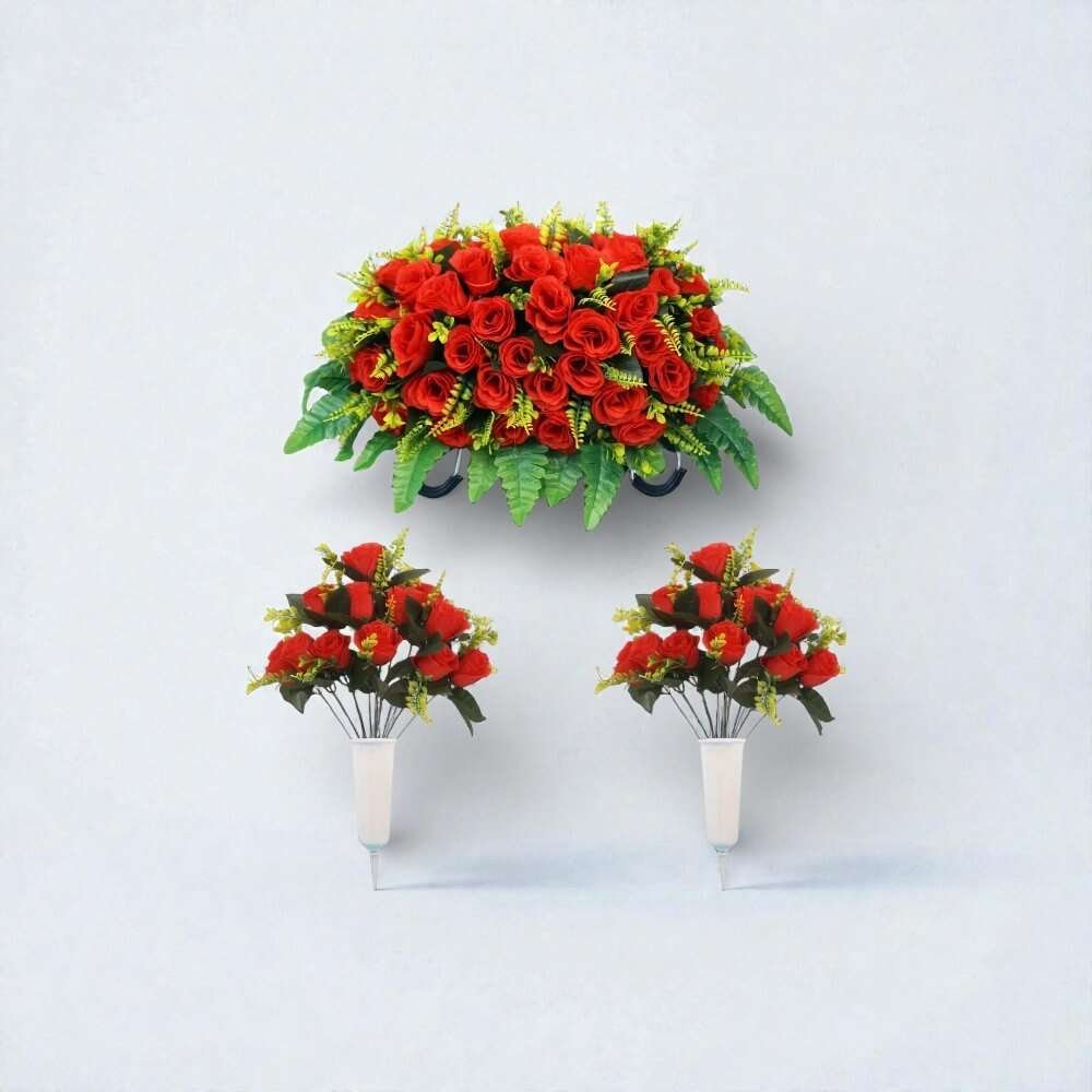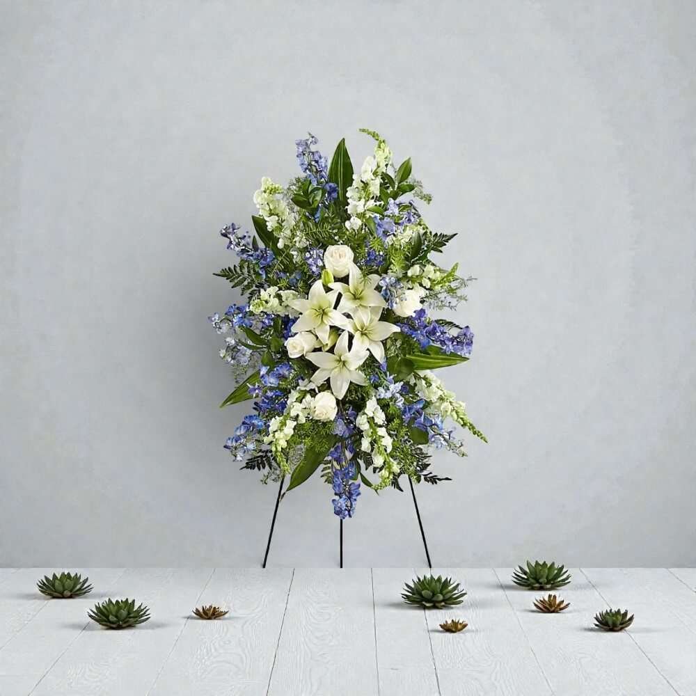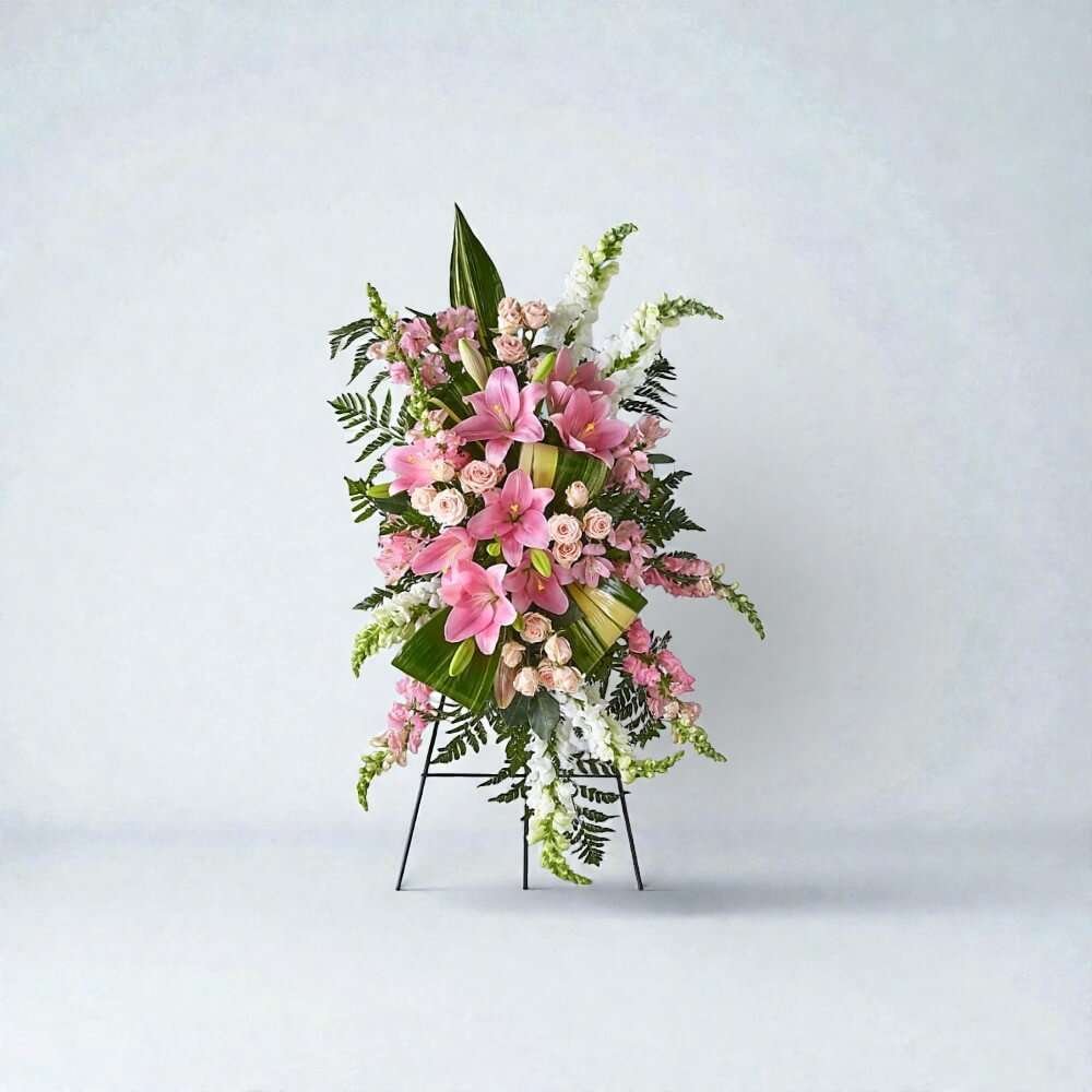 A graceful tribute designed to honor and remember loved ones. This elegant rose arrangement symbolizes eternal love and remembrance, offering comfort and beauty during memorials, funerals, or moments of reflection. Its timeless design provides a heartfelt way to express sympathy and respect.